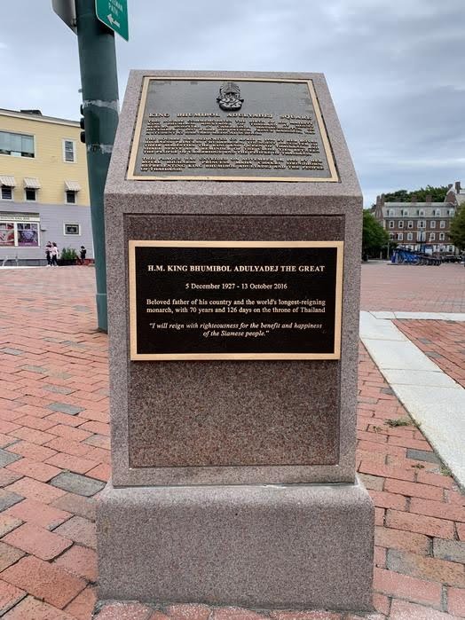 Among other commemorative efforts, the KTBF installed The Birthplace Monument on November 18, 2003, at the intersection of Eliot and Bennett Street at Harvard Square. This historical landmark continues to attract visitors from Thailand and America who wish to express their respect and gratitude.